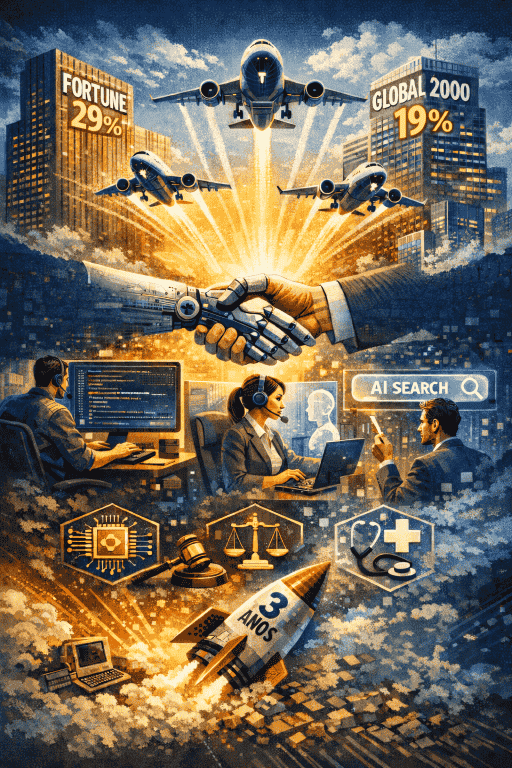 ![]() | Apesar do ceticismo em relação a "pilotos que não decolam", números da a16z mostram que cerca de 29% das empresas da Fortune 500 e 19% da Global 2000 já são clientes pagantes de startups de IA - com contratos assinados e soluções em produção. Três casos de uso que já estão funcionando são codificação, atendimento ao clientes e busca. Já no recorte setorial, as áreas de tecnologia, jurídico e saúde são lideram a adoção da IA. O que isso significa? Em apenas três anos desde a chegada do ChatGPT, a IA conquistou um espaço no mundo empresarial que tecnologias anteriores levaram décadas para alcançar. |