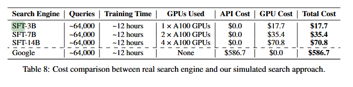 Quais foram os resultados? O treinamento de modelos de IA usando o método ZeroSearch custou bem menos. Experimentos da Alibaba mostraram que fazer 64.000 consultas usando um modelo de 7 bilhões de parâmetros como mecanismo custou cerca de US$ 35; em comparação, usando a API do Google, o valor subiu para cerca de US$ 587.