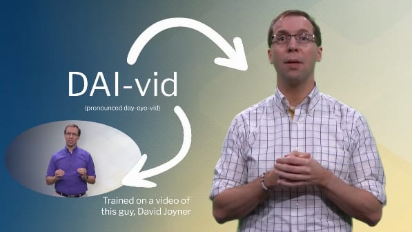Como? Contando com DAI-vid, avatar de IA realista modelado a partir da voz e da aparência de Joyner e também de uma pulseira característica (com AI grafada em código binário) para indicar que se trata de uma versão virtual do professor. DAI-vid estreou no curso Foundations of Generative AI oferecido em vídeo na plataforma edX e pode ser editado e atualizado com a ajuda de ferramentas de IA em qualquer ponto.