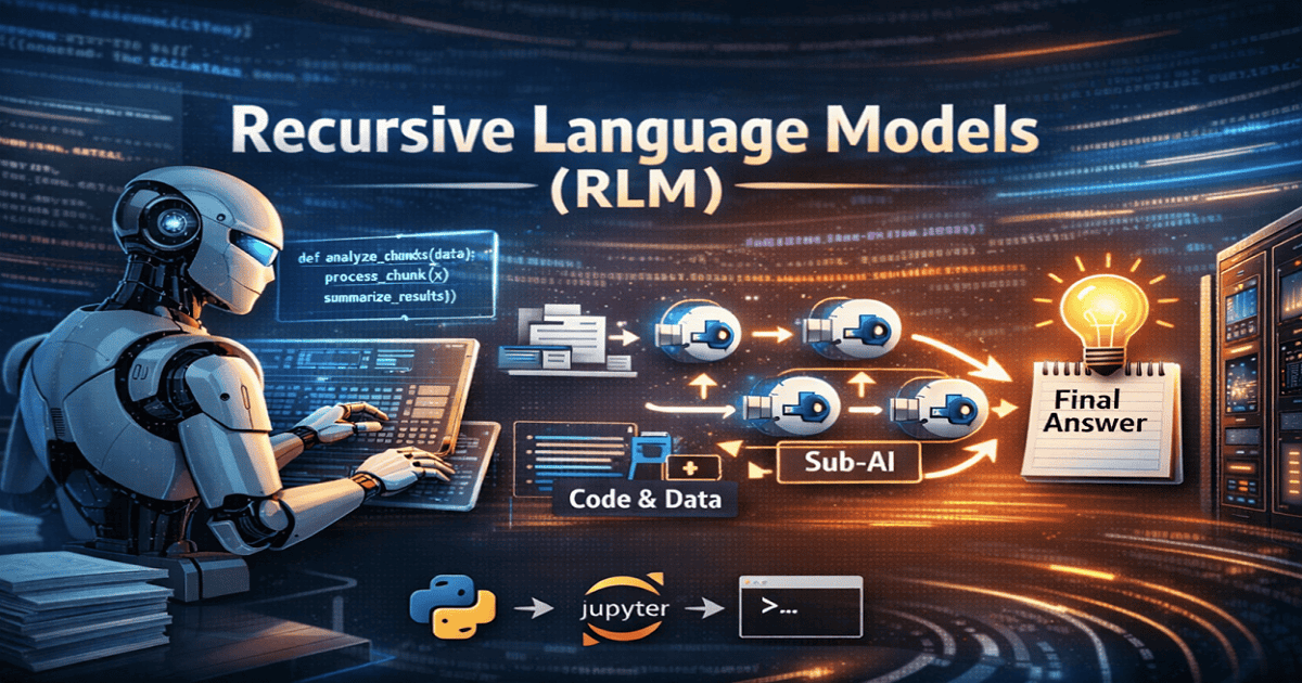 Para resolver isso, a Prime Intellect apresentou o Recursive Language Model (RLM). Em vez de simplesmente tentar "espremer" mais dados em uma janela estática, o RLM transforma prompts longos em um ambiente dinâmico que pode ser explorado de forma programática.