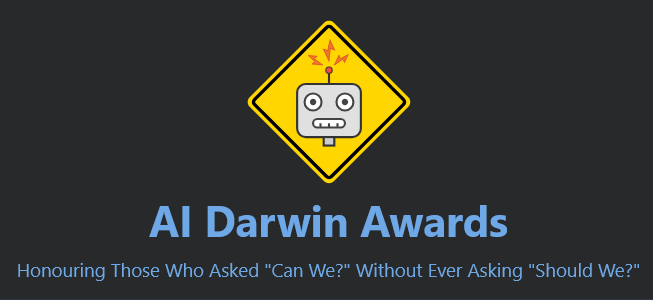 O AI Darwin Awards é um evento irônico que homenageia os usos mais desaconselhados da IA e se inspirou no Darwin Awards original – que reconhece indivíduos que supostamente contribuíram para a evolução humana ao se autoexcluírem da humanidade por suas próprias ações desastrosas.